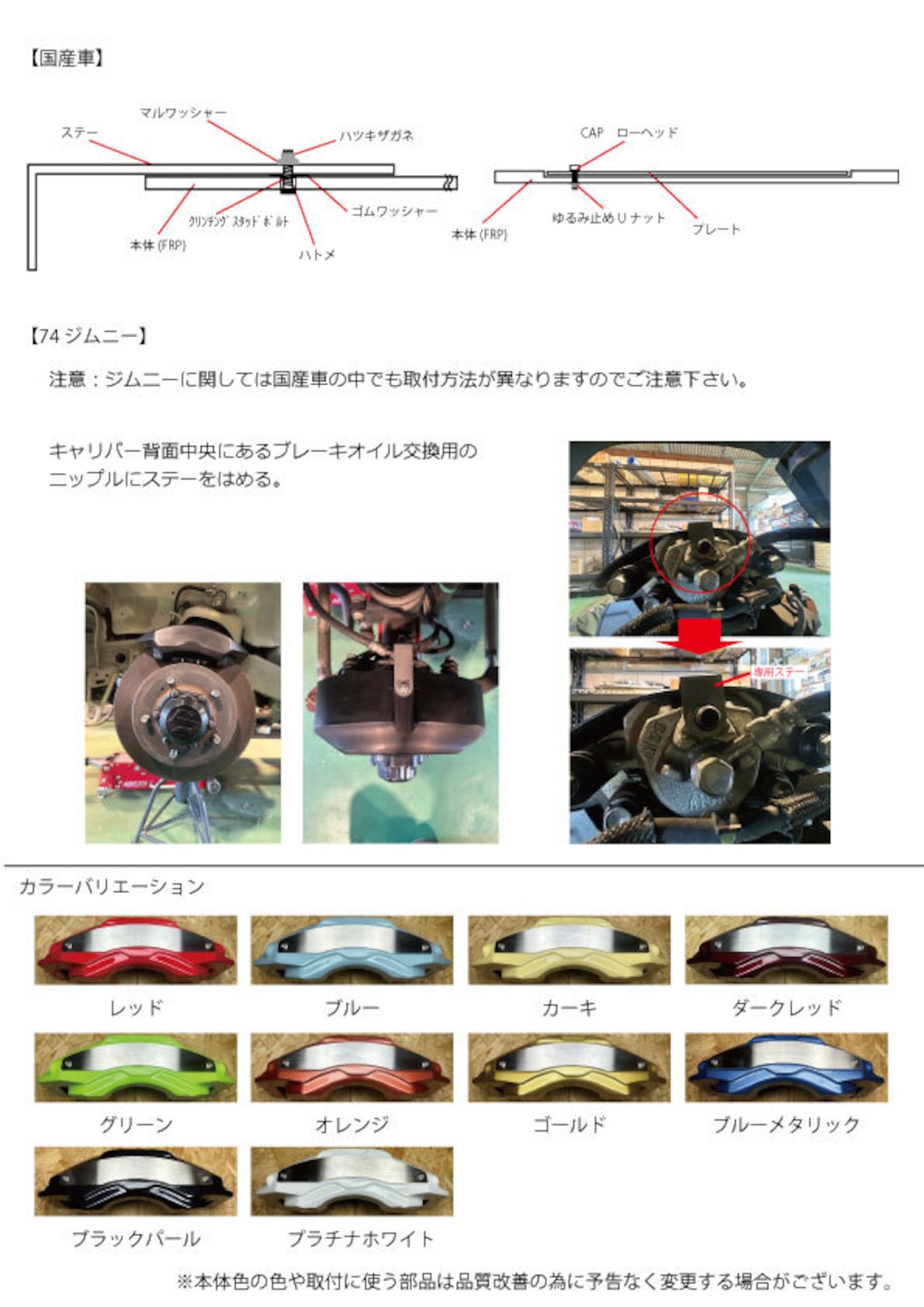 補足:純正キャリパー品番はディーラーにてお調べする事が出来ますのでご自身か車の購入店にてお調べください。